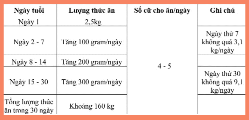 Nếu hết thức ăn trong 2 ngày liền thì tăng lượng thức ăn lên 10-20 %.