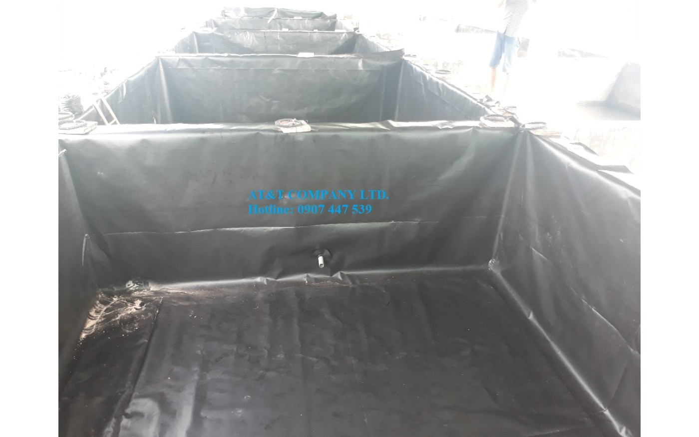Bể nuôi tôm được thiết kế rộng khoảng 25 – 40 m2, chiều cao hơn 1m; mật độ thả từ 220 – 250 con/m2. Với 1 bể nuôi 40 m2 sẽ thả khoảng 1.000 con tôm giống. Trong bể nuôi được lắp đặt máy sục khí, hệ thống cấp thoát nước ra ngoài riêng biệt. Trước khi thả giống tiến hành cấp nước khoảng 50 – 60 cm và sử dụng TCCA để khử trùng triệt để bể nuôi, 3 ngày sau tháo hết nước và sục rửa.